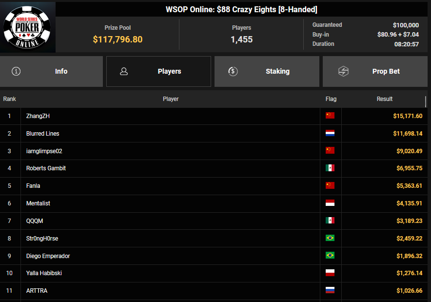 Rekord ist es keiner geworden, aber 5.961 Entries sorgten dafür, dass man locker über die $25.000.000 Preisgeldgarantie kam. $28.314.750 schwer ist der Preispool geworden, die top 609 Plätze waren bezahlt. Viele DACHs hatten es in Tag 2 geschafft, einige wie auch Chris Nguyen kamen aber über den Min-Cash von $9.953 nicht hinaus. Auch für Christopher Pütz, der als einer der Big Stacks in Tag 2 gestartet war, kam das Aus bereits auf Rang 41 ($60.875).
